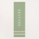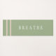 Le yoga est écrit dans un élégant script noir sur le devant. Calmant rose pastel et rayures vert sauge contre arrière - plan blanc. Breathe est écrit à l'envers dans la typographie blanche contre l'arrière - plan vert avec double bande géométrique rose. Design original par TamiraZDesigns.