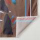 Tapisserie avec image amérindienne sur arrière - plan brun et couleurs rouge, noir, bleu et blanc. Dessin de Linda Wagner.