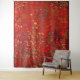 Feuillage à grande échelle et fleurs aux couleurs vives d'or, vert, rouge et bleu contre un arrière - plan rouge. Inspiré par les textiles historiques. Évoque un intérieur bohème chaleureux et décadent et un jardin de campagne sauvage.