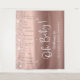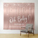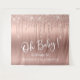 Une tapisserie de bienvenue élégante et luxueuse pour votre baby shower qui présente des paillettes rose gold fausses qui coulent du haut et "Oh Baby !" dans un script blanc stylisé sur un fond ombré rose gold. Vous pouvez facilement personnaliser le nom de la future maman.