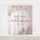 Tapisserie élégante et bohème de fête de mariage avec un fond rose poussiéreux avec une arche florale, feuilles de palmier séchées du désert aquarelle, herbe de pampas et un modèle de texte moderne facile à personnaliser.
