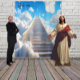 Belle tapisserie de fond de scène pour l'escalier vers le ciel, changez le texte à votre guise lors de votre commande.