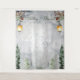 Tapisserie de mariage avec lanterne et arbres de pin rustiques d'hiver pour fond de photobooth. Magnifique fond de mariage hivernal élégant avec lanterne enneigée et branches de pin botaniques rustiques. Ce design de mariage moderne personnalisable peut être facilement personnalisé avec vos propres détails de mariage.