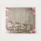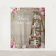Fond de bois de grange rustique et floral aquarelle avec échelle en bois décorée et guirlande lumineuse et lettres "Amour" pour mariage ou toute autre occasion.