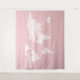 Tapisserie de carte du monde rose pâle incluant de nombreux détails et de petites îles sur un fond rose millénaire pour une décoration de chambre inspirante ou un fond pour photobooth de station de selfie lors d'un mariage sur le thème du voyage, d'un dîner de répétition, d'une fête d'anniversaire, d'une baby shower ou d'une fête de mariage.