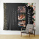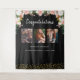 Conception de remise de diplôme d'études secondaires avec le mot "félicitations", un collage de photos avec trois (3) images, une bordure florale avec des fleurs roses aquarelles et des éléments de verdure et, en bas, des points de confettis dorés, sur fond noir. Personnalisez facilement avec vos images, couleurs et texte préférés.