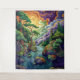 Illustration vibrante d'une rivière dans une forêt enchantée