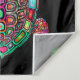 Tapisserie murale avec image de tortue bohème colorée contre un arrière - plan noir.