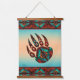 Il s'agit d'une Tapisserie murale "One of a Kind" Tribal Bear Paw Bois Tacheté ! Il comprend une grande patte d'ours tribale amérindienne, qui représente la protection et la bonne santé sur un Arrière - plan turquoise et orangé de coucher de soleil...Entouré par des frontières sud-ouest turquoise, orange et noir! C'est un graphisme original de l'artiste Kerry Miller.