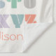 Un Alphabet Graphique/tapisserie coloré et personnalisable pour la chambre d’un enfant. Personnalisez ce design avec le nom de votre enfant, ses initiales ou tout autre texte. Cette tapisserie aurait l’air bien dans une crèche ou dans une chambre pour enfants. Les couleurs sans distinction de genre comprennent : violet, vert, orange, jaune, turquoise, turquoise, gris, marron, crème.