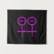 Cette tapisserie incroyable est conçue pour les lesbiennes. Elle représente deux symboles féminins roses côte à côte. Le fond est noir et il y a du texte rose personnalisable à l'intérieur de chaque symbole pour mettre des noms.