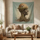 Présentant notre tapisserie captivante, un mélange fascinant de surréalisme et d'expression artistique qui transcende les frontières entre l'humanité et la nature. Dans cette scène à couper le souffle, le haut du corps d'une femme se transforme gracieusement en un système de racines majestueux, qui rappelle un arbre florissant. Ses yeux, son nez et sa bouche se fondent harmonieusement dans la structure arboricole, symbolisant la profonde connexion entre l'humanité et le monde naturel. Comme les racines s'étendent vers le bas, ils bercent une charmante maison nichée dans leur étreinte. Doté d'une porte et de plusieurs fenêtres, la maison est un refuge pittoresque dans le paysage verdoyant, entouré d'une verdure luxuriante et d'une pelouse sereine. Au-dessus, les oiseaux s'envolent sur fond de ciel bleu clair orné de nuages blancs, évoquant un sentiment de liberté et de tranquillité. Réalisée dans des teintes vives de vert et de bleu, cette tapisserie est un chef-d'oeuvre visuel qui vous invitation à vous plonger dans son monde enchanteur. Accrochez-le dans votre maison ou votre espace de travail pour ajouter une touche de beauté surréaliste et inspirer la contemplation sur l'interconnectivité de tous les êtres vivants. Elevez votre décor avec notre tapisserie surréaliste et laissez son imagination captivante allumer votre imagination et éveiller votre âme. C'est une image d'IA.