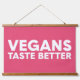 Ce graphique présente une typographie rose et audacieuse qui indique "VEGANS GOSTE BETTER" en tête. Le design utilise une police moderne et attrayante qui met l'accent sur le message positif sur le veganisme. Les couleurs vives et le texte fort créent un visuel attrayant pour ceux qui apprécient ou promeuvent un style de vie basé sur le plante. Cette pièce peut servir de slogan pour une campagne végétalienne, un restaurant ou une initiative de sensibilisation