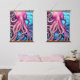 Tapisserie Suspendue Arrière - plan rose octopus bleu Ocean Wave
