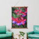 Décorez votre espace de vie avec cette tapisserie murale verticale suspendue avec des dessus en bois qui présente une image photographique de fleurs violet et rose, bicolore Fuchsia. Un joli design floral !