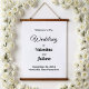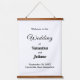 Hanging tapestry with black text on white background for couples seeking a classic and timeless color combination that can complement various wedding themes. It is also suitable for couples who prefer a text based design without background elements for readability. The black text contrasting on the white background also improves readability. The text is center aligned and the fonts used are calligraphy, script and sans serif. Calligraphy and script fonts are used to enhance the design while the sans serif font is used to enhance readability. Customize it by typing the names of the bride and groom, date and location of the wedding. You can also change the wording in the design tool including the font style, font color and background color. Please check the appearance after typing text. If the appearance is pleasing to you, you can place your order now. If you need to resize or reposition the text, please adjust in the design tool. A hanging tapestry to welcome the guests and enhance the wedding venue. To the bride and groom, congratulations on your engagement! Wishing you both a lifetime filled with love and happiness.