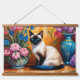 Tapisserie Suspendue Chat et bouquets siamois dans Vases aquarelle