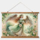 This dreamy scene captures a serene angel bathed in soft light, surrounded by fluttering clovers and gentle blossoms that create a peaceful, enchanted atmosphere. Flowing watercolor greens blend into warm golden tones, giving the artwork a glowing cottagecore charm with a touch of whimsical folklore. Her graceful wings, delicate florals, and quiet pose invite a sense of calm beauty, evoking nature’s gentler moods and a timeless feeling of hope. AI generated artwork.