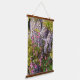 Décorez un espace de vie avec cette tapisserie murale verticale et suspendue avec des dessus en bois qui présente une image photographique des fleurs de Columbine rose et des fleurs de Wisteria pourpre. Un joli design floral !