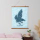 Une image simple et bleue d'un corbeau vivant (Corvus corax) de style norse-celtique, superposée à une image arrière - plan enneigée. Customisez en ajoutant votre propre texte.