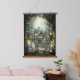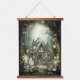Un chemin forestier éthérée de fleurs, et une souris boisée magique, sont présentés dans ce style de tapisserie magique enchanté, avec des lumières brillantes. Tapisserie à thème Imaginaire. Chemin du portail forestier.