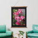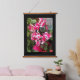 Décorez votre espace de vie avec cette tapisserie murale verticale suspendue avec des dessus en bois qui présente une image photographique de fleurs Cyclamen roses, variées et divers feuillage vert encadrés d'une bordure noire.