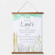 Une tapisserie suspendue avec une écriture biblique du livre des Lamentations 3:22-23 KJV et décorée avec une bordure d'aquarelle de plantes et de motifs dans une variété de couleurs neutres et des tons de vert.