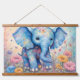Tapisserie Suspendue Eléphant Bébé mignon dans un jardin pastel Daisy