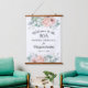 Symbole de tapisserie d'accueil magnifiquement féminin pour fêter un 90ème anniversaire, ce design présente des bordures de bouquet de pavots d'aquarelle, de roses, d'eucalyptus et de la verdure à la traîne en beige pastel, rose, vert et bleu-vert. Personnalisez le modèle de texte avec vos informations souhaitées.