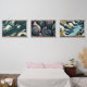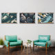 Flowing Harmony: This captivating illustration presents in abstract landscape of undulating waves in rich shades of teal and gold. The fluiic, organic lines evoke the gentle movement of water ripples or rolling hills, creating a mesmerizing sense of flow across the surface. Small, detailed dots are interspersed throughout the design, adding texture and depth. This artwork beautifully combines traditional artistry with digital techniques, offering a visual tribute to the serene and dynamic beauty of nature. Perfect for those seeking a sophisticated and harmonious piece to enhance their space.