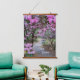 Decorate your living space with this vertical, hanging wall tapestry with wooden tops that features the photographic image of a spring garden of pink rhododendron flowers along a walking path, with an inspiring and motivational quote that reads "Follow Your Dreams" printed in white, stylized writing. A lovely, floral design!