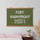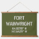La tapisserie surmontée de bois indique les coordonnées de latitude et de longitude du fort Wainwright, près de Fairbanks, en Alaska, police blanche de style sercil sur l'arrière - plan vert de l'armée.