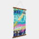 Hola texte répété dans une palette colorée de bleu, jaune, rose, turquoise et vert.