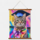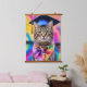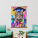 Tapisserie à pendage dynamique avec des oeuvres d'art fantaisistes. Cette charmante tablette avec un casquette bleu gris et un écharpe de teinture à cravate derrière un arrière - plan pscychédélique. Alma Wad a utilisé Canva AI pour créer ce chef-d'oeuvre. Idéal pour tous ceux qui aiment les chats mignons, les vibrations psychédéliques et le thème de graduation amusant.