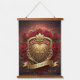 Elevate your space with this Luxury Red Rose Gold Heart Wall Tapestry. This stunning piece of Romantic Decor features a lavish golden heart shield surrounded by vibrant Red Roses and the banner "LOVE FOREVER". It's the perfect large Wall Hanging for a master bedroom, living room, or as a spectacular Wedding or Anniversary Gift.