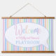 Une délicieuse tapisserie murale personnalisée avec le nom de votre enfant ou de votre enfant, parfaite pour décorer une salle de jeux, une maison de jeux ou une maison de jardin. Personnalisable avec n'importe quel nom et titre de chambre, ce design présente des couleurs douces pastel arc-en-ciel qui apportent joie et douceur à leur espace spécial.