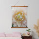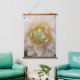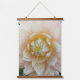 Décorez votre espace de vie avec cette tapisserie verticale accrochée aux murs avec des dessus en bois qui ornent l'image d'un gros plan d'une fleur de dahlia rose pastel.