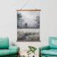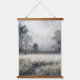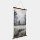 Un pré moderne, maussade, brumeux, avec des arbres et des herbes profondes. Impression encadrée à partir d'une peinture d'aquarelle à brosse sèche. Ethérée, minimaliste. Noir, blanc et un brun. Aquarelle lave avec des détails de brosse sèche. Il s'agit d'une impression d'aquarelle. Cadre noir simple et moderne. Choisissez le style et la couleur de votre cadre.