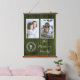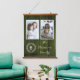 Personnalisez un cadeau unique avec un Monogramme de famille Rustique vert Photo Hanging Tapestry. La tapisserie est décorée de deux emplacements photo, d'une personnalisation monogramme et d'un arrière - plan en bois rustique.