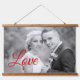Red Love script typographie mariage photo accrochée à la tapisserie surmontée de bois. Changez juste l'image !