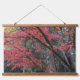 Decorate your living space during the autumn months with this hanging wall tapestry with wooden tops that features a photo image of tree branches full of colorful, red Maple leaves. A lovely, botanical image for your autumn home decor.