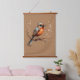 Un Robin orangé et bronzé abstrait est livré avec des yeux immenses et des cheveux sculptés. Une image orientée vers la gauche correspond à cette conception