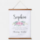 Sophia Name Signiing - Wall Hanging Un cadeau personnalisé parfait avec des fleurs roses et des feuilles d'eucalyptus vert détail.