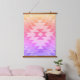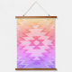 Il s'agit d'une tapisserie murale en tissu avec l'impression d'un motif géométrique Navajo. Les couleurs sont vives, jaune, rose et lavande. REMARQUE : La tapisserie n'est PAS tissée, c'est de l'art photographique d'un design tissé. La tapisserie est parée de rails en bois sur le dessus et le bas.