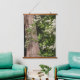 Décorez votre espace de vie avec cette tapisserie murale verticale et suspendue avec des dessus en bois qui présente une photo des petites fleurs blanches de Sweet Autumn Clematis, avec un grand conifère dans l'arrière - plan. Un joli design floral !