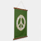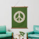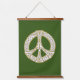 Une élégante tapisserie murale ornée d'or et blanc, symbole de paix celtique complexe sur arrière - plan vert.