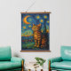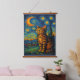 A golden-orange tabby cat gazes skyward beneath a swirling Van Gogh-inspired night sky, where stars blaze like ritual beacons and the moon pulses with cosmic rhythm. Painterly brushstrokes evoke resilience and wonder, as the feline sentinel anchors a dreamscape of village rooftops and cypress silhouettes.