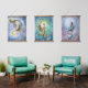 Un ensemble de trois tapisseries représentant des sirènes de Molly Harrison. "Deep Sea Moon", "Mermaid Moon" et "Magic" © Molly Harrison
