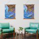 Vagues Abstraites en bleu et en or. Les couleurs bleu clair et bleu profond se mélangent dans cette oeuvre d'art rêveuse, ce qui en fait un choix exceptionnel pour tous ceux qui recherchent une touche de couleur à ajouter à leur maison ou à leur bureau.