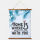 Home is not defined by four walls, but by the presence of the person who anchors our heart. This whimsical vertical tapestry features soft, ethereal blue hydrangea petals that frame a bold, modern declaration of deep belonging. Scientific research in attachment theory suggests that a secure emotional bond acts as a "safe base," allowing individuals to feel a profound sense of "home" regardless of their geographic location, as long as they are with their partner.